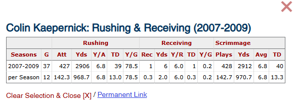 This performance not only set the tone for Nevada's magical 13-1 season, but helped showcase Kaepernick's name to the broader college football audience that hadn't kept up with the massive numbers he'd accumulated through his first three seasons in Reno: