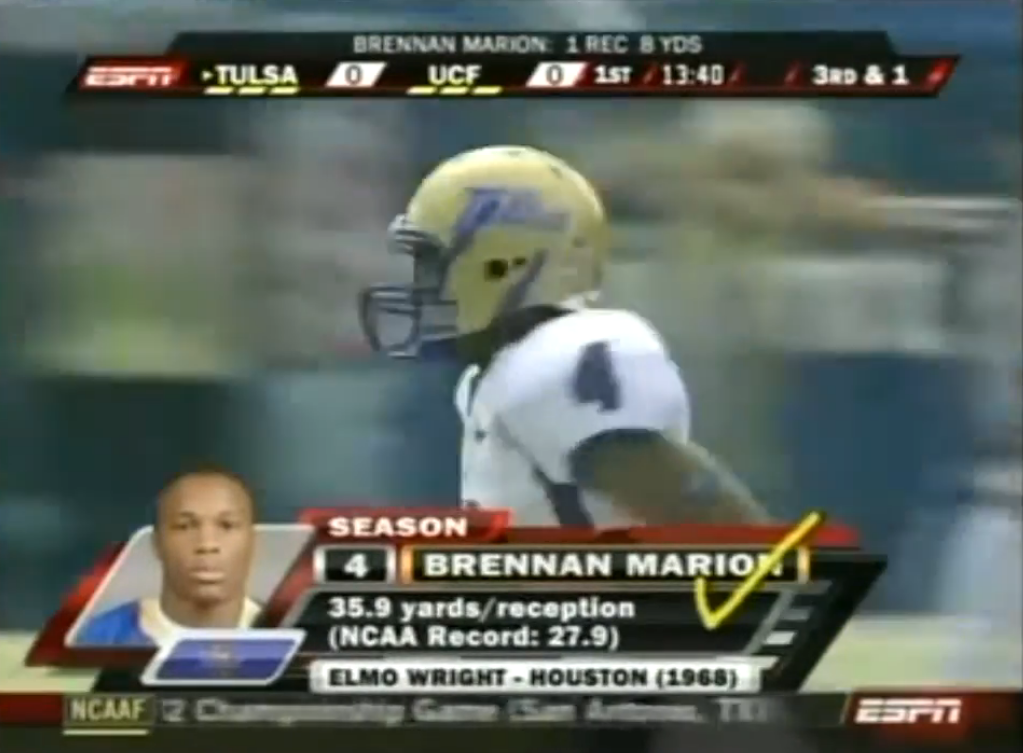 - Current Colorado Offensive Coordinator Brennan Marion did serious damage as a receiver for the Golden Hurricane: