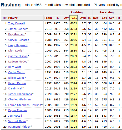 Welcome to day 16 of Running Back Respect Month! Yesterday, Steve Slaton led a comeback for the ages against Louisville to kickstart the most successful era of West Virginia Football. Here's where we're at today, and how the rest of the month looks: