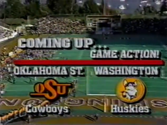 Both teams were fresh off highly successful seasons, so this game had some added electricity beyond two ranked teams playing in week one. Washington went 11-1 in 1984, beating Oklahoma in the Orange Bowl to finish No. 2 in the final AP Poll - which is still tied for their highest final ranking in school history. Meanwhile, Oklahoma State took Head Coach Jimmy Johnson's depature to Miami in stride. The Cowboys went 10-2, capping the year with a Gator Bowl win against South Carolina. Their No. 7 finish was the program's highest since finishing fifth in 1945! Freshman RB Thurman Thomas earned MVP honors, running for 155 yards and a TD, while also throwing a six-yard score.
